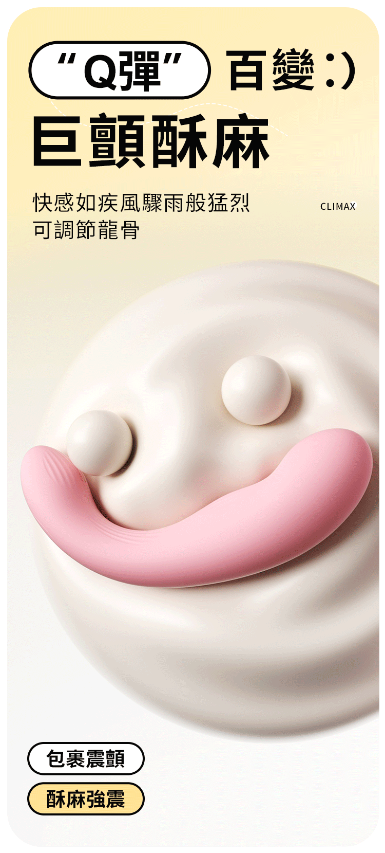 可愛外型結合多頻律動設計,為日常放鬆帶來輕鬆愉悅的全新選擇。